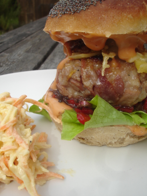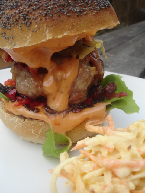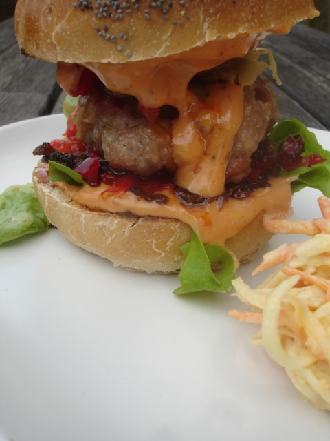 ça me donne faim ! et il y a tout ce que j’aime dans ce burger. Miam Miam !