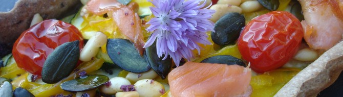 Un déjeuner suivi d’un goûter pantagruélique pour les 4 ans d’un de mes neveux de coeur (je les appelle mes « petits zizis » ) au beau milieu des vignes. Revenir à la maison, repus. Pas envie de se lancer dans de la grande cuisine, pas envie de « mijotage » dans la casserole, pas envie de boîtes non plus (faut pas charrier hein ?!). Juste envie de couleurs, d’une tarte qui ferait dire « Bah tu vois, ton week-end a été top et bien autant le terminer en beauté pour commencer en fanfare une nouvelle semaine ». En cas de déprime du dimanche soir, je trouve que ce mantra est pas mal.