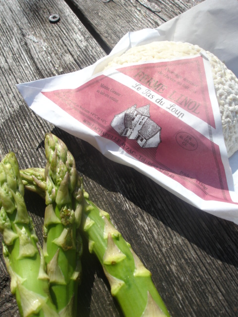 Alors même que nous dégustions le Domaine de la Ramade, une fulgurance m’est apparue au niveau gustatif. Asperges vertes et fromage de chèvre frais. Une vraie transe s’était emparée de moi du genre « AAAAAAAHHHHH !!!!! Je vois, oui je vois (ou je bois) une asperge verte qui court avec un fromage de chèvre. Et pis… y a une tarte aussi qui veut les rattraper… Et une cerise qui fait du hoola hoop avec du miel…. AAAAAAHHHHH ! » Fin de la transe. Couchée panier.